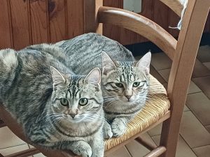 Schtroumpfette et Sira, adoptées depuis plusieurs années. La première est une petite bombe d’énergie, la seconde est beaucoup plus calme. Mais elles font mon bonheur ! ,❤️