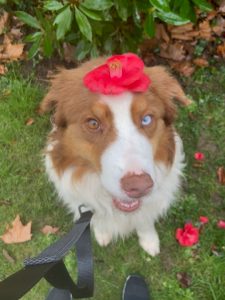 URKO, en balade matinale, tous les jours dans le jardin, avec son adoptante.